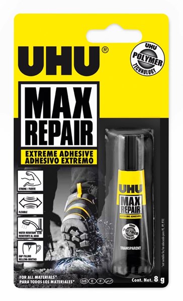 הסוד מאחורי כל פתרון אפקטיבי בעבודות הדבקה, טמון בבחירה חכמה ונכונה של מוצרים איכותיים! בדיוק כמו דבק MAX REPAIR מבית UHU. דבק על בסיס פולימר היברידי המעניק חוזק מקסימלי תוך גמישות קלה. האידיאלי ביותר להדבקת פורצלן, מתכת, עץ, פלסטיק, גומי, פרספקס ועוד. כל זאת לצד עמידות מרשימה במים ובטמפרטורה עד 120 מעלות (כולל מדיח כלים) וניתן לצביעה. מכיל 8 גרם.