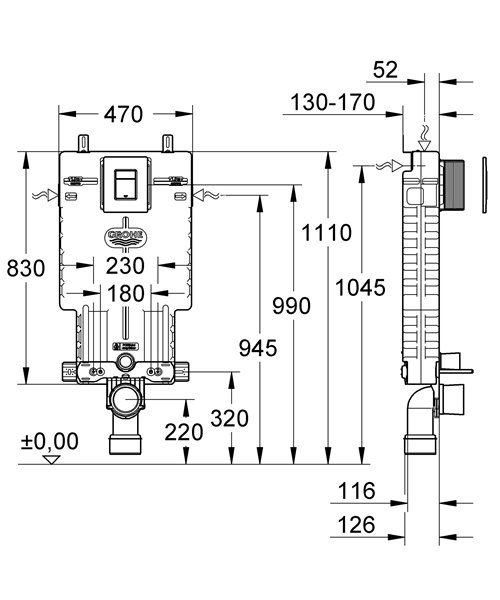 מיכל הדחה סמוי איכותי, מקצועי ועמיד במיוחד מבית גרואה. מיכל הדחה סמוי דו-כמותי דק עם לחצן מרובע בגימור כרום ניקל מרשים וללא רגלים. אידיאלי במיוחד להתקנה בקיר בלוק/בטון. מגיע עם 2 ברגי קיבוע לשירותים, פעולת הדחה שקטה, שסתום פריקה פנאומטי המציע 3 מצבי הדחה: הדחה דו-כמותית, הדחה מקוטעת והדחה יחידה, מכיל ערכת חיבור לכניסה ויציאת מים, בור הדחה 6 ליטר ו-9 ליטר, חייבור ½ לאספקת מים כולל שסתום זווית משולב, חיבור צינור גמיש בדחיפה, בידוד מקסימלי ויעיל מפני עיבוי ומתאם יציאת מים 110 / 90 מ"מ.