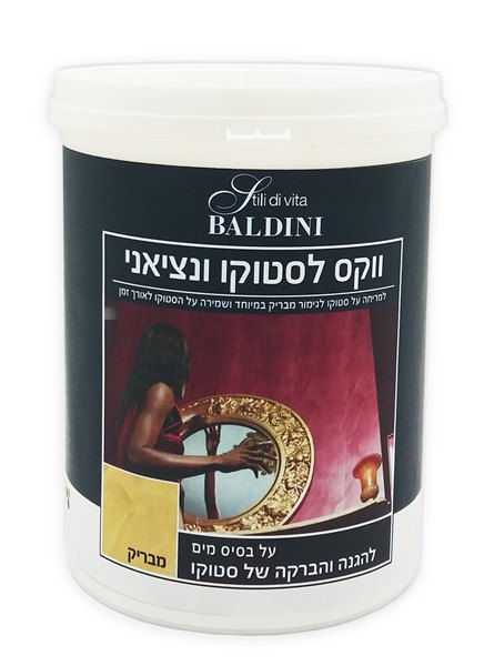 הכירו את ווקס לסטוקו וניציאני מבית BALDINI. ווקס איכותי ומקצועי במיוחד למריחה על סטוקו ונציאני תוך קבלת גימור מבריק ומרשים. כל זאת, מקסימום הגנה ושמירה על הסטוקו לאורך זמן. בנוסף, הווקס לסטוקו וניציאני של בלדיני קל ליישום ע"י מטלית רכה, בעל כושר כיסוי מדהים של כ 20 מ"ר לליטר ומתאים לשימוש פנימי בלבד. מגיע בגוון שקוף. מכיל 1 ליטר.