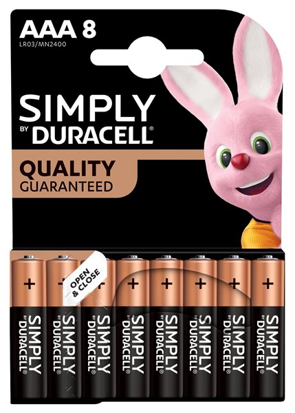 סוללות AAA אלקליין 1.5V איכותיות של Duracell בהספק של 850mAh, בעלות אורך חיי מדף מרשים של 10 שנים עם טכנולוגיה מתקדמת של שימור עוצמה Duralock אשר שומרת על הסוללות טעונות באחסון עד 10 שנים. כל זאת לצד סגירה הרמטית למניעת דליפות מן הסוללה והנדסה מתקדמת PLUS POWER – לתוספת עוצמה גם למכשירים הנמצאים בשימוש יומיומי. מגיעות במארז של 8 יחידות.